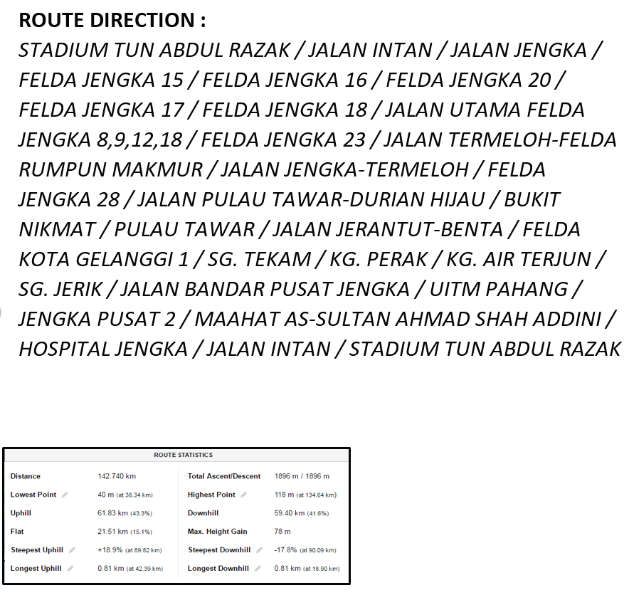 RACE - RM150 | FELLOWSHIP RIDE - RM120 FELLOWSHIP - MEN JUNIOR (12~18 yrs ) - 120KM (RM120.00) FELLOWSHIP - MEN OPEN (19 ~ 39 yrs) - 120KM (RM120.00) FELLOWSHIP - MEN VETERAN (40 & Above) - 120KM (RM120.00) FELLOWSHIP - WOMEN OPEN - 120KM (RM120.00) RACE ROADBIKE - MEN JUNIOR (12~18 yrs ) - 140KM (RM150.00) RACE ROADBIKE - MEN OPEN (19 ~ 39 yrs) - 140KM (RM150.00) RACE ROADBIKE - MEN VETERAN (40 & Above) - 140KM (RM150.00) RACE ROADBIKE - WOMEN OPEN - 140KM (RM150.00) WARGA FELDA F'LWSHIP - MEN JUNIOR (12~18 yrs ) - 120KM (RM120.00) WARGA FELDA F'LWSHIP - MEN OPEN (19 ~ 39 yrs) - 120KM (RM120.00) WARGA FELDA F'LWSHIP - MEN VETERAN (40 & Above) - 120KM (RM120.00) WARGA FELDA F'LWSHIP - WOMEN OPEN - 120KM (RM120.00) WARGA FELDA RACE - MEN JUNIOR (12~18 yrs ) - 140KM (RM150.00) WARGA FELDA RACE - MEN OPEN (19 ~ 39 yrs) - 140KM (RM150.00) WARGA FELDA RACE - MEN VETERAN (40 & Above) - 140KM (RM150.00) WARGA FELDA RACE - WOMEN OPEN - 140KM (RM150.00) |